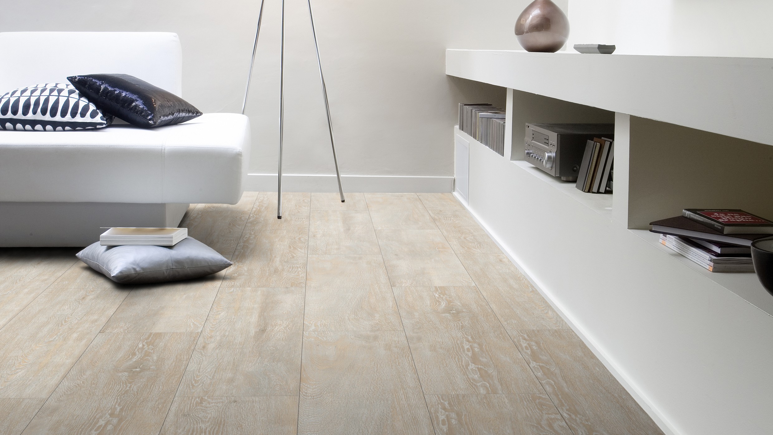 Wersja na click w łatwy i szybki sposób pozwala odświeżyć i zmienić starą, zniszczoną posadzkę bez użycia kleju, także na nierównych powierzchniach takich jak: płytki ceramiczne czy parkiet.